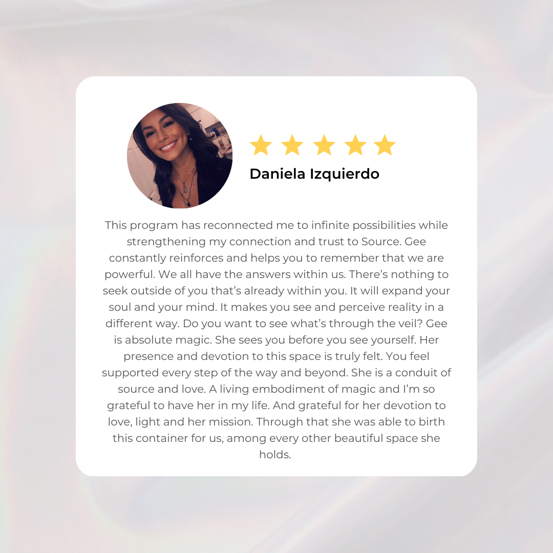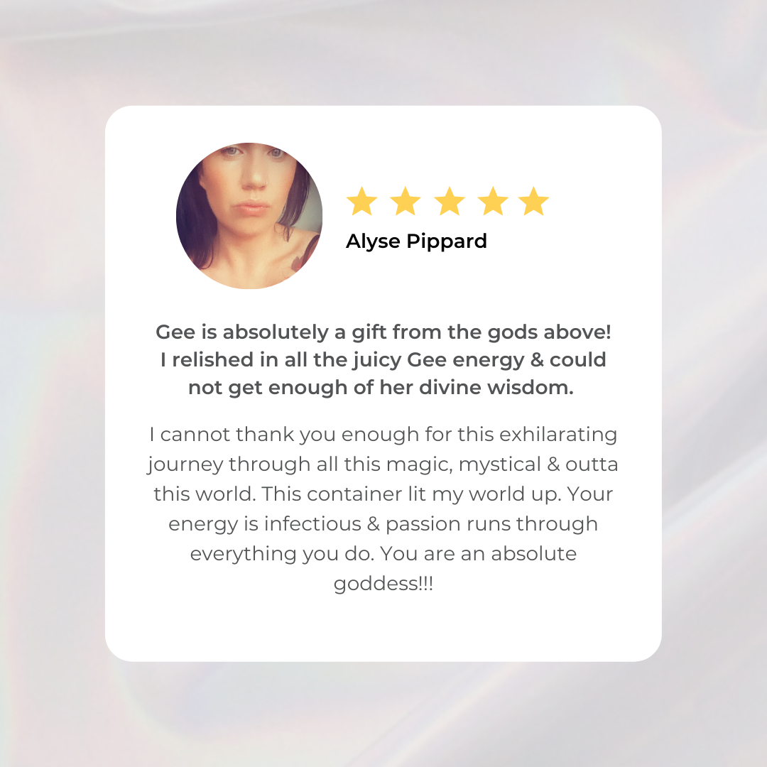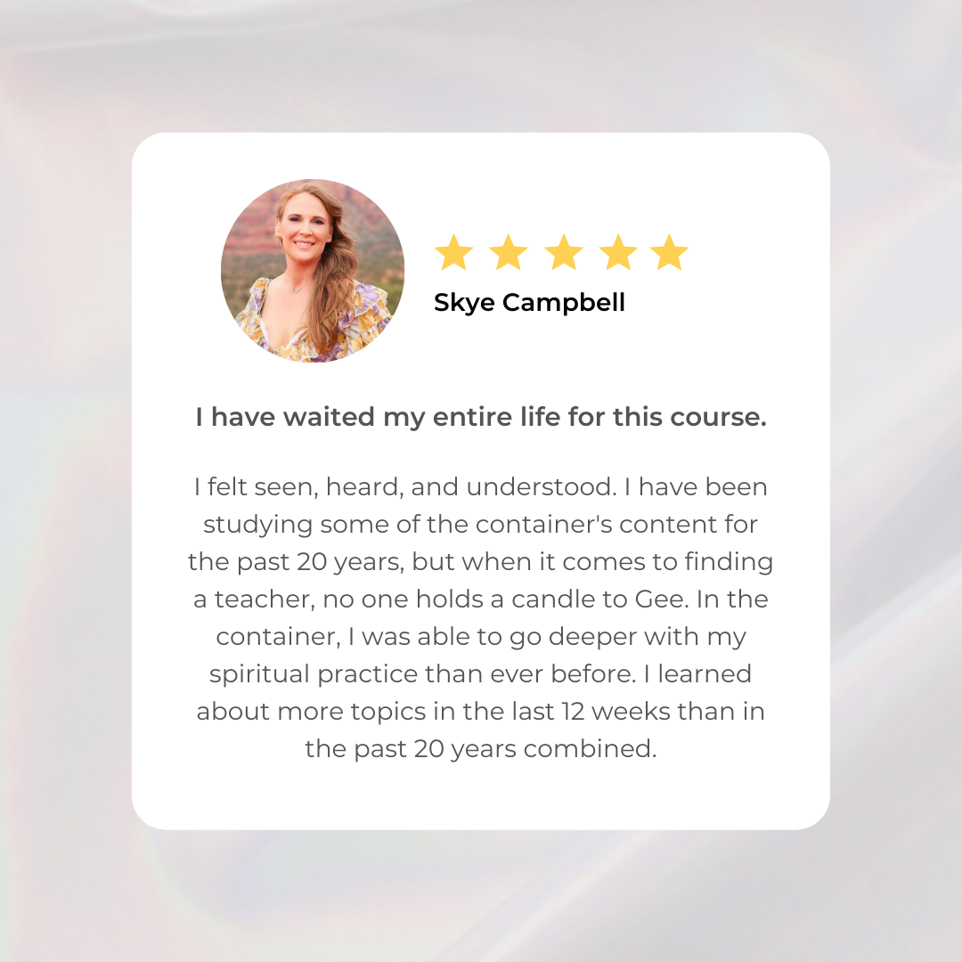 I have created this container as a means for us to grow together. I know some of you prefer group learning dynamics and I hear you, and so this container has been created for you. We are one, and together we can amplify our collective and personal intentions. This container will go incredibly deep into your soul, so if you aren't ready for this level of work, this may not be the experience for you. Holding space is an art form and I'm in a place in my career right now where I have the capacity to invest the energy required in this way.